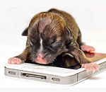 Сейчас двухнедельный щенок помещается на айфоне или кредитной карте и весит всего 124 грамма.